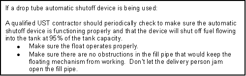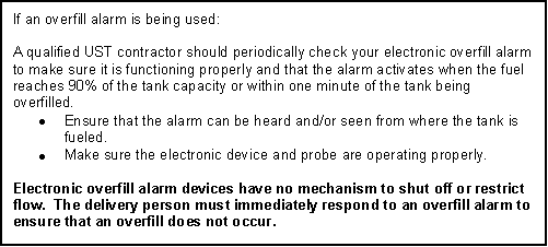 to the overfill warning devices and alarms in use at your facility. In almost all cases, deliveries should be by gravity, not by pressurized